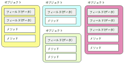 図: オブジェクトはフィールド(データ)とメソッドを一つにまとめたもの