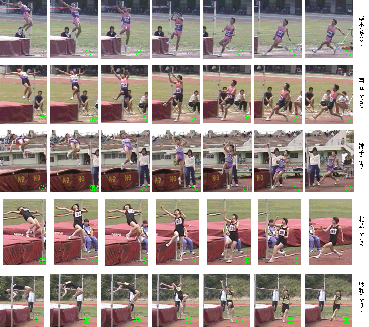 走高跳、安房地区5名踏切比較(柴本作 右選手は反転して比較)