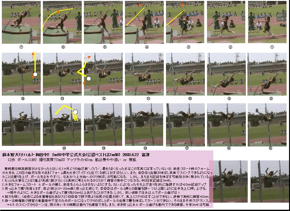 静止画・棒高跳、2003和田中若者棒高1名 ・・・・・・智大2m90コメント付き