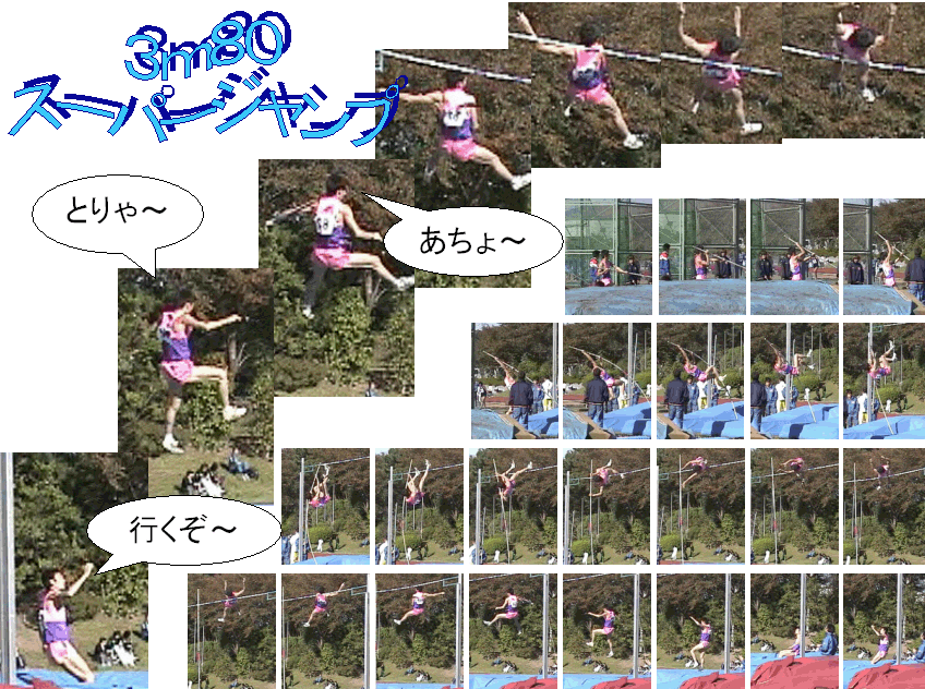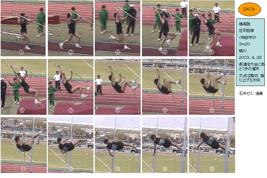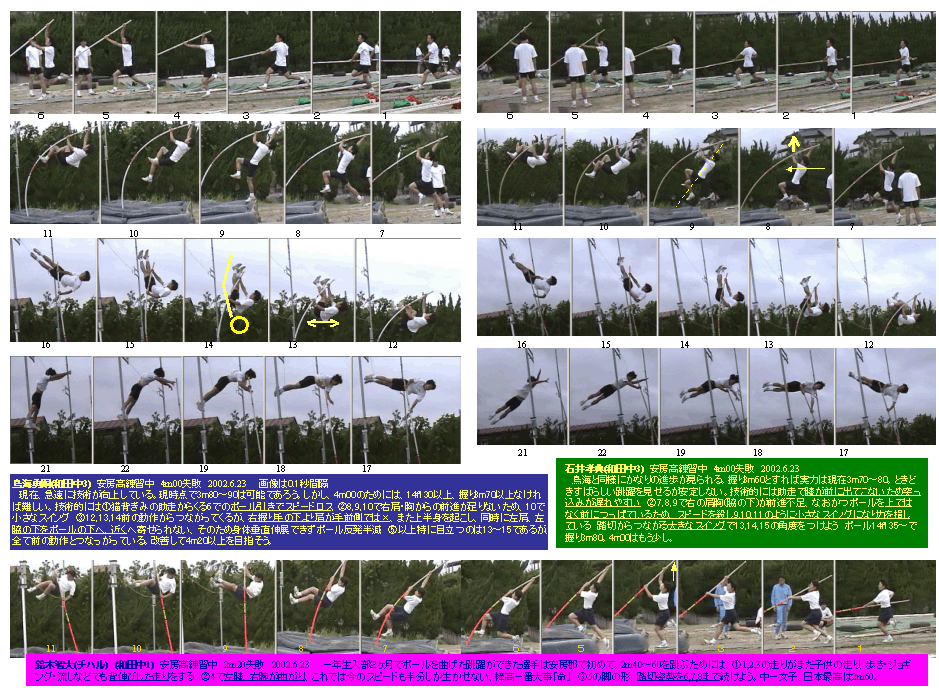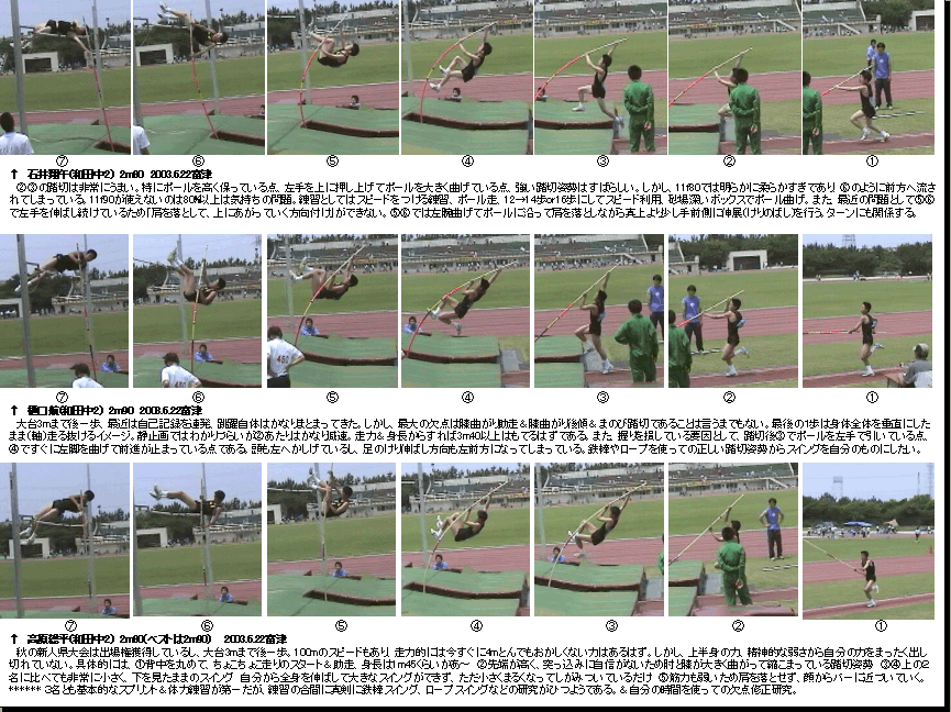 静止画・棒高跳、2003和田中若者棒高3名 ・・・・・初心者の欠点を研究