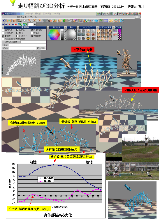 走幅跳、2001中学2年女子★はさみとび3D分析