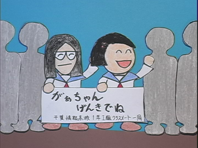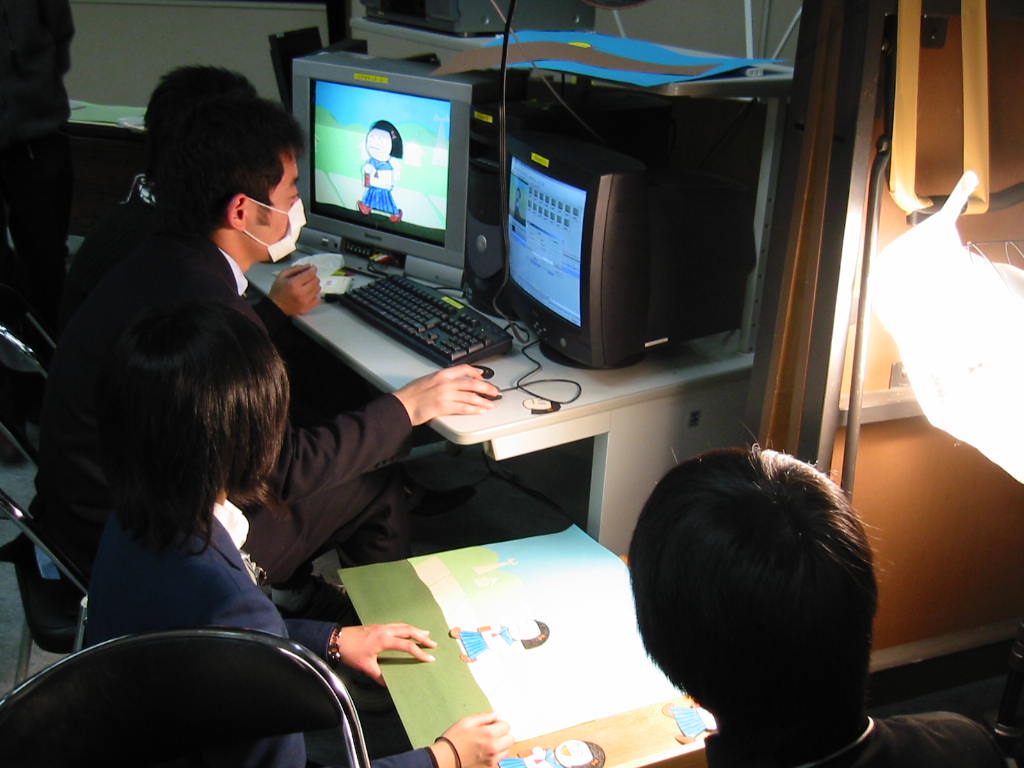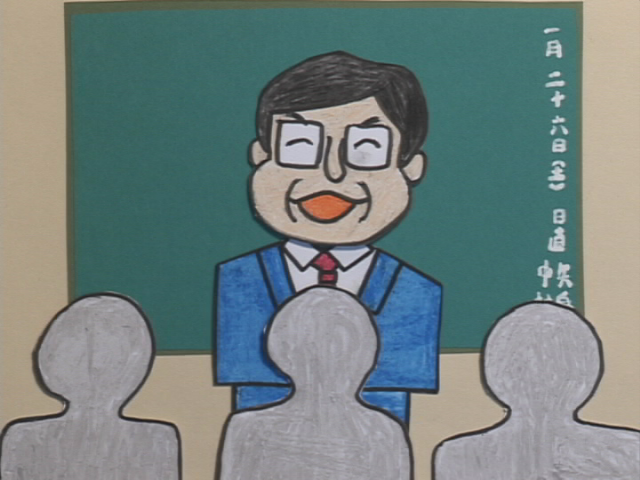 千葉県高等学校文化連盟放送専門部主催 「第37回高校生のための放送講座」 テレビ番組部門実習作品 2008年1月26日 東京情報大学にて開催された「第37回高校生のための放送講座」のテレビ番組部門(指導:伊藤敏朗)の今回のテーマは「アニメーションに挑戦!」. 午前中の講義に続き、午後の4時間の実習では、県内の各高校放送部の高校生34人が分担して、7分20秒のアニメ作品を完成させました. タイトルは『メタボな父さんお引っ越し大作戦』. 世の中のメタボなお父さんたちに捧げる友情と家族愛の感動物語.ぜひご覧下さい. ■7分20秒の全編は,こちらの【Quicktime42MB】でご覧になれます |