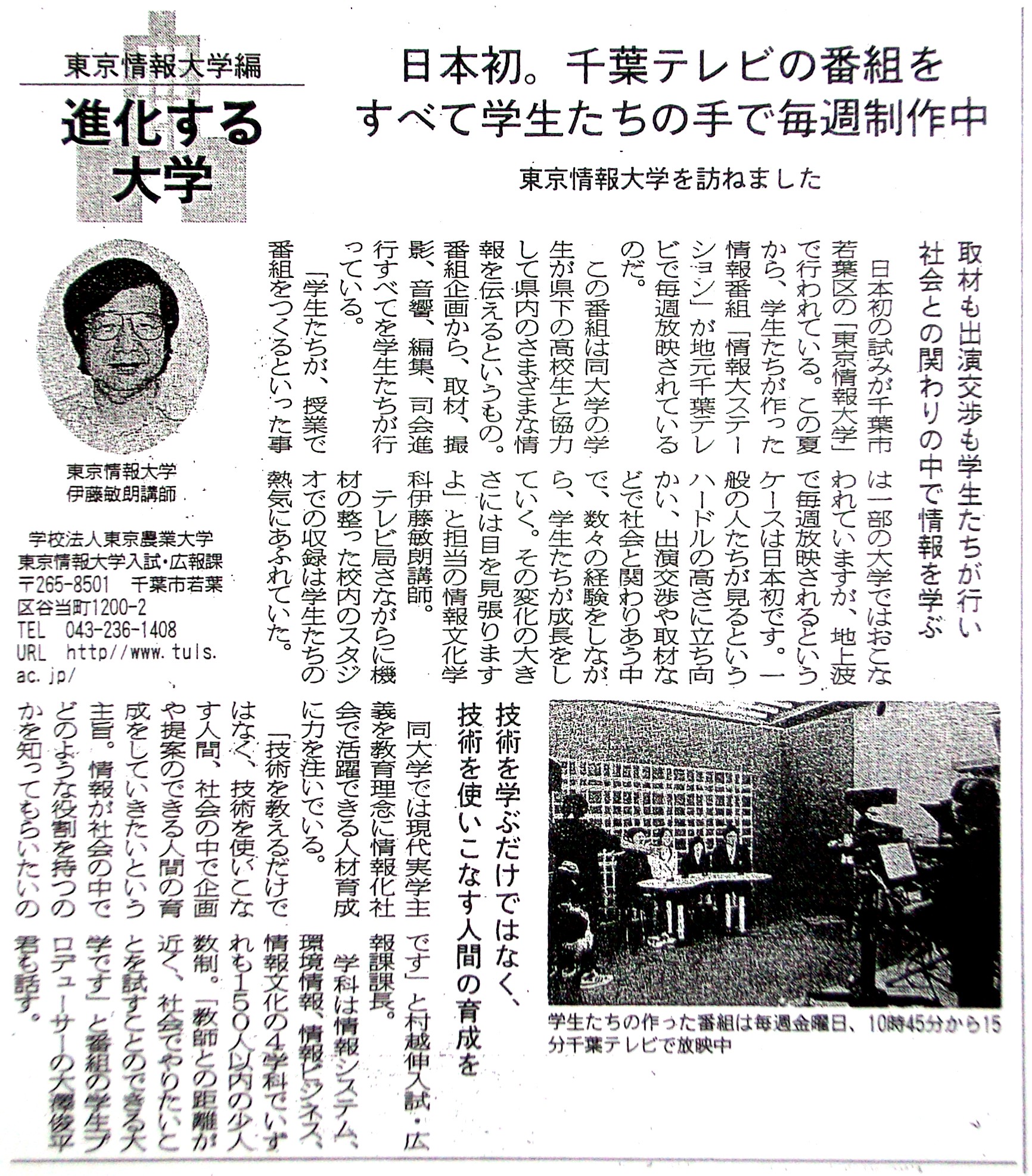 日本初 千葉テレビの番組をすべて学生たちの手で毎週制作中
