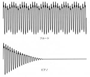 図2ピアノのエンベロープとフルートのエンベロープ