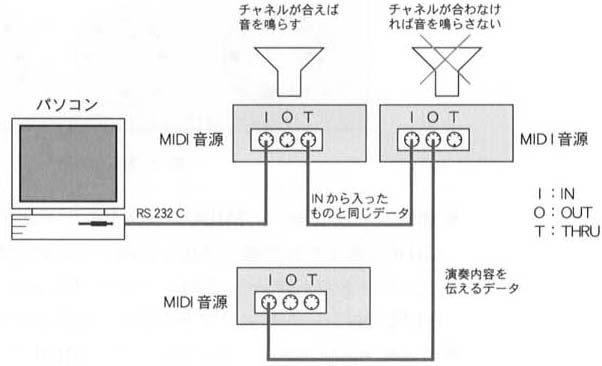 以下では,これら二つのメッセージの働きとその見分け方を解説する.また,実際にMIDIデータを送受信するときに必要となる知識としてMIDIチャネル,MIDIインタフェース,MIDI端子,MIDIシーケンサそしてシーケンスソフトについて解説する.
