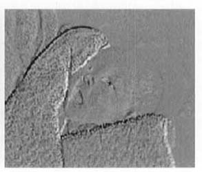 テレビ画面を撮影したシーンで,テレビの画面が途中で断絶されて上下に分かれているように見える場合がある.これは,撮影するカメラの走査と,撮影されるテレビの走査の同期が一致していないために起こる現象である.