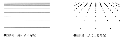 線や点の密度が変化することによって面の勾配が知覚される(図4.8、図4.9)