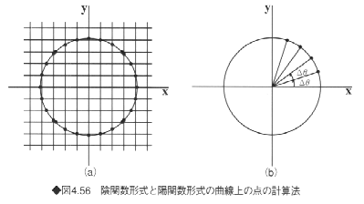 原点を中心とする円をコンピュータで描く場合、動点P(x,y)は、中心からの距離をrとすれば、