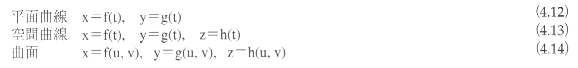 ここでは、造形要素としてのさまざまな曲線の定義、およびその描き方について述べる。