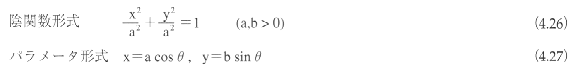で表されるので、tの増分を細かくとれば滑らかな円を描くことができる。
