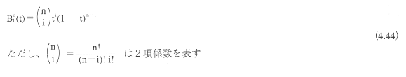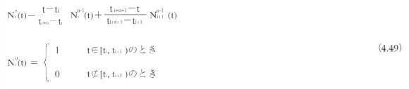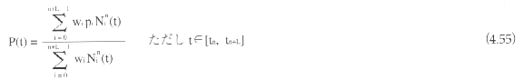 ここで、Nni(t)はn次Bスプライン関数である。NURBS曲線は有理ベジェ曲線とBスプライン曲線の性質をあわせもつ曲線である。
