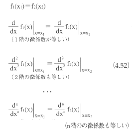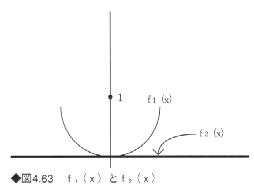 たとえば、f1=1-√1-x2とf2(x)=0は、x=0でC1級の連続性をもつ(図4.63)。