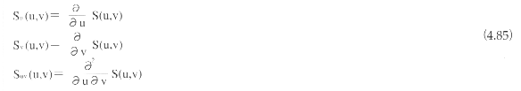 である。つまり、Su(u,v)は(u,v)におけるu方向の接ベクトル、Sv(u,v)は(u,v)におけるv方向の接ベクトルを表す。またSuv(u,v)は(u,v)におけるツイストベクトルとよばれ、その位置での曲面のねじれ方を表す。